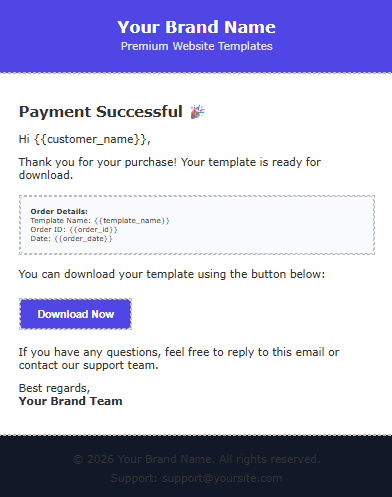 ✅ Personalize content – Many templates use variables (like {{customer_name}} or {{order_id}}) that get replaced with real data when the email is sent